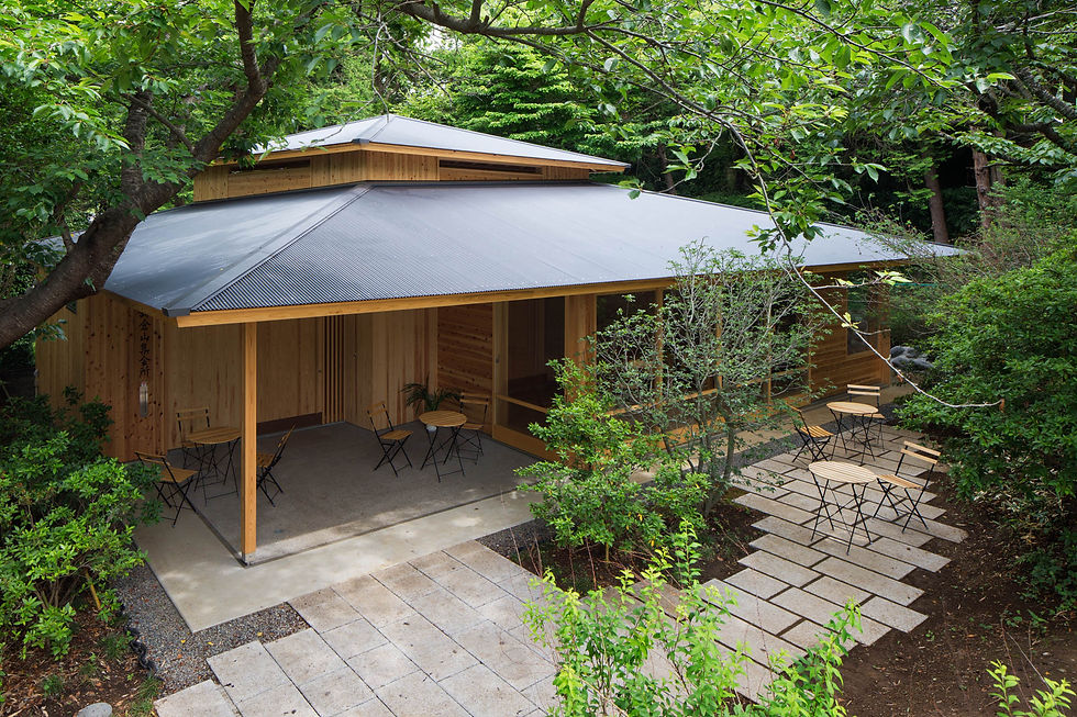 鎌倉山に建つ集会所の建替えである。敷地形状に沿った凧形平面を外郭とし、中心位置に角度を振った正方形平面の集会室を配置することで、建物に求心性や開放性を持たせるとともに様々な空間を創り出している。